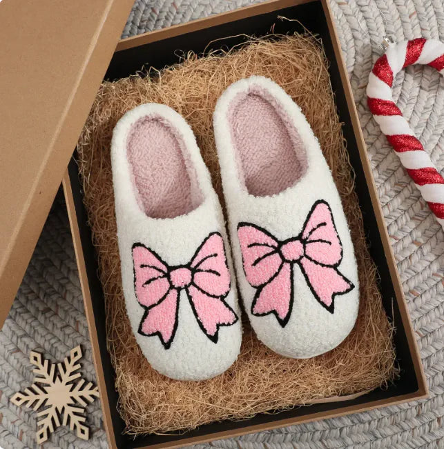 Step into warmth and comfort with these adorable Cozy Bow-Tie Cotton Slippers, designed for women who value both style and functionality. The soft plush upper and artificial wool lining provide a snug and cozy feel, perfect for keeping your feet warm during colder days. Featuring a charming fishtail knot bow, these slippers add a playful touch to your loungewear.