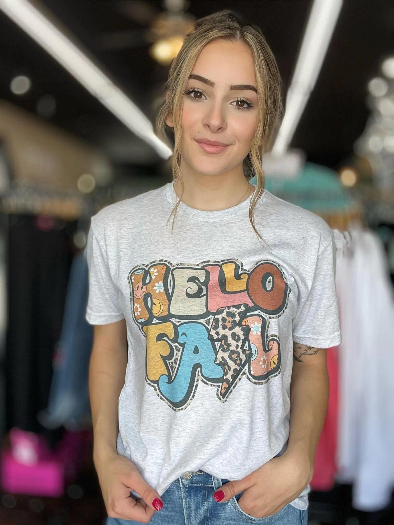 Hello Fall, we couldn't be happier to see you! This graphic is SO cute! Printed on one of our favorite tees; so soft and lightweight!