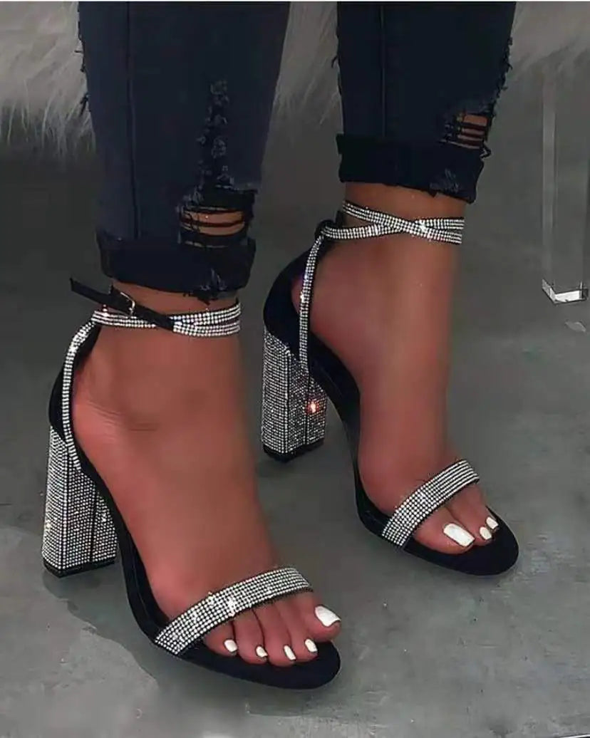 Don't miss out on the chance to own a pair of these exquisite sandals. Check out our selection of images below to see the beauty and quality of the Rhinestone Chunky Heel Buckle Sandals for yourself!