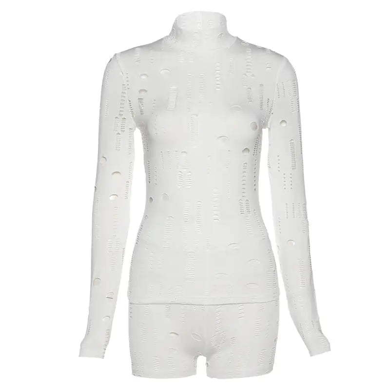 The Ultimate Gift for Fashion Icons: Searching for a gift that's both chic and playful? Look no further! Our Ripped Short Set with Long Sleeves is a surefire way to delight the trendsetter in your life – a stylish addition to any fashion-forward wardrobe.