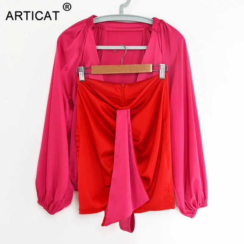 Transform your evening attire with this satin set women V-neck. Whether you're attending a dinner party or a special event, this elegant piece adds a touch of glamour and sophistication, making you the center of attention.