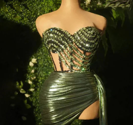 Shine bright in this stunning Women's Tube Top & Rhinestone Chain Skirt Outfit! Designed for glamorous nights, this two-piece set features a stylish tube top and a dazzling rhinestone chain skirt. Perfect for parties, clubbing, and special occasions, this outfit offers a sleek and sophisticated look that turns heads. Pair it with your favorite heels and accessories for a show-stopping ensemble.