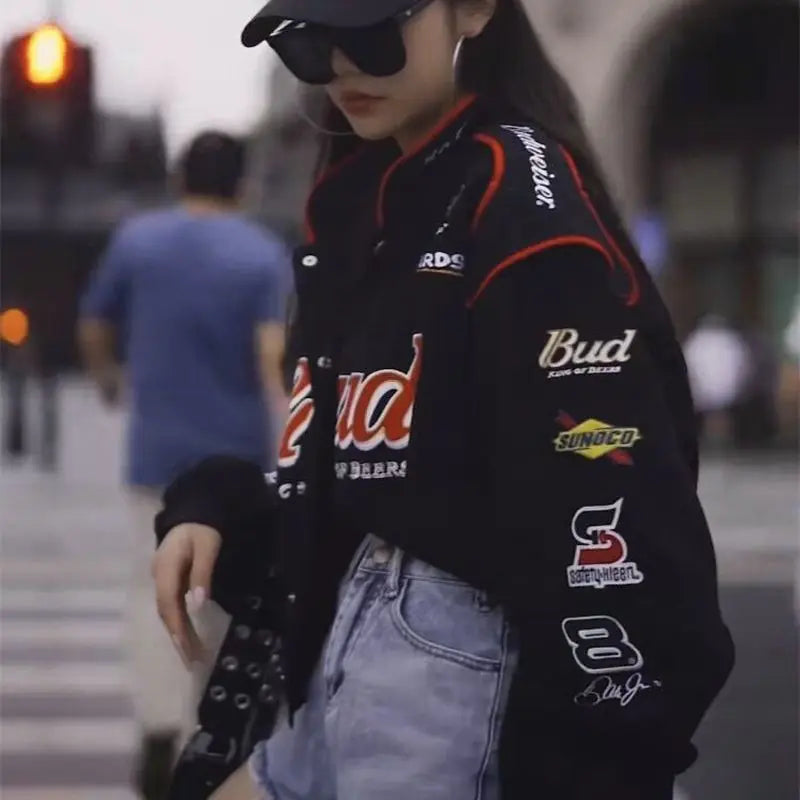 Elevate your fashion game with our trendy Tooling Jacket Women's Short Section. Crafted for the fashion-forward individual, this jacket blends the perfect fusion of **Fried Street Heavy Industry** vibes with intricate **Embroidery** detailing, making it a must-have addition to your wardrobe.